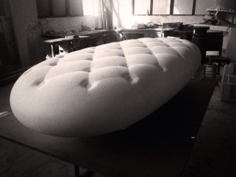 The first Water Bench designed by MARS Architects for the Guggenheim just came out of its mould. The outdoor furniture collects rainwater through the button inlets and stores it above and below ground for irrigation of parks during the dry season. The firs